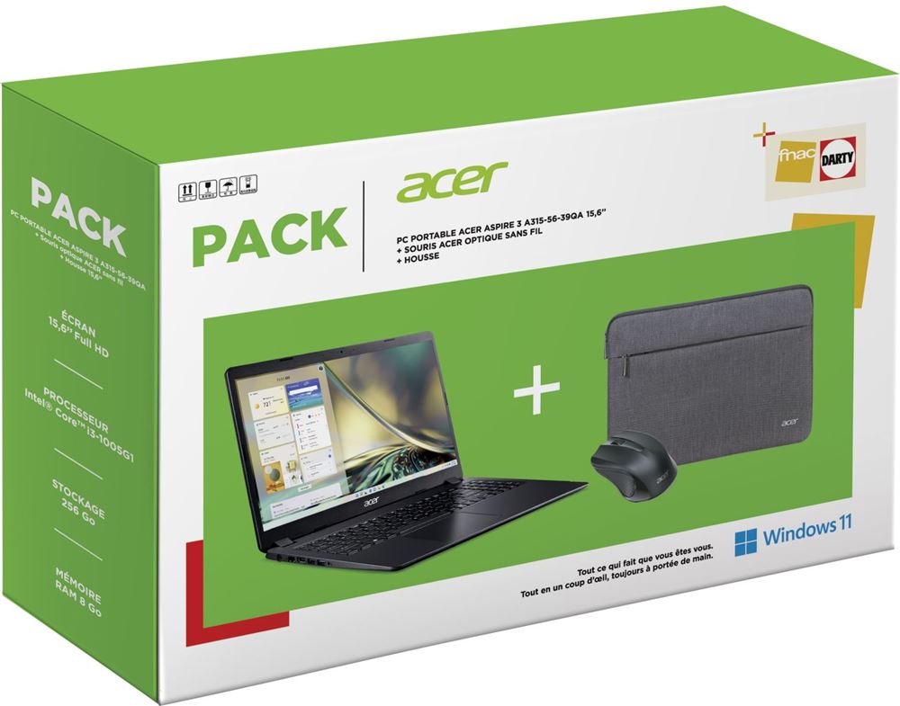 PC portable Acer Pack Aspire Go 15 AG15-42P-R38D 15,6″ AMD Ryzen 7 16 Go RAM 1 To SSD Argent + Housse + Souris optique sans fil